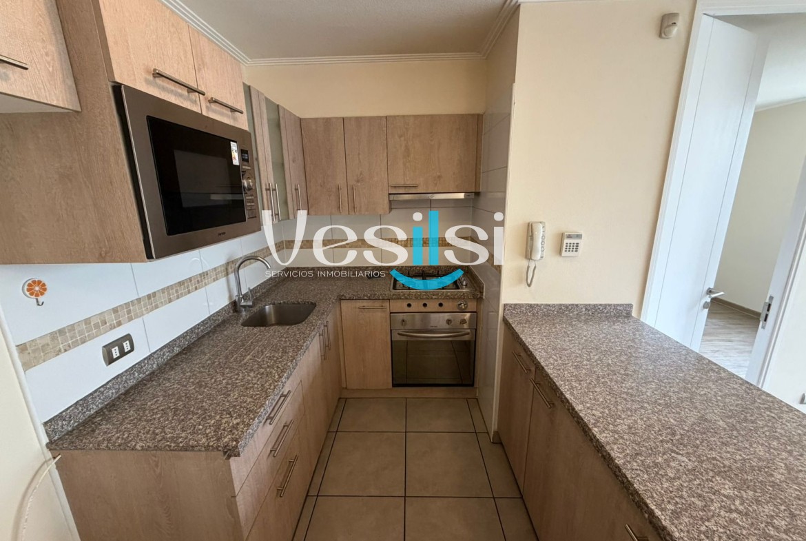 Este departamento ubicado en la Comuna de San Miguel, esta distribuido de la siguiente manera, dos habitaciónes matrimoniales, dos baños completo en suits, una cocina abierta americana, cocina eléctrica, balcón y piso 2C. ESTACIONAMIENTO INCLUIDO.