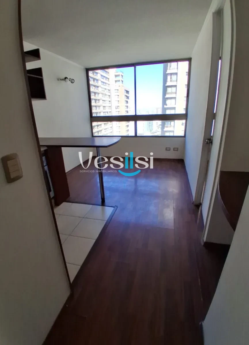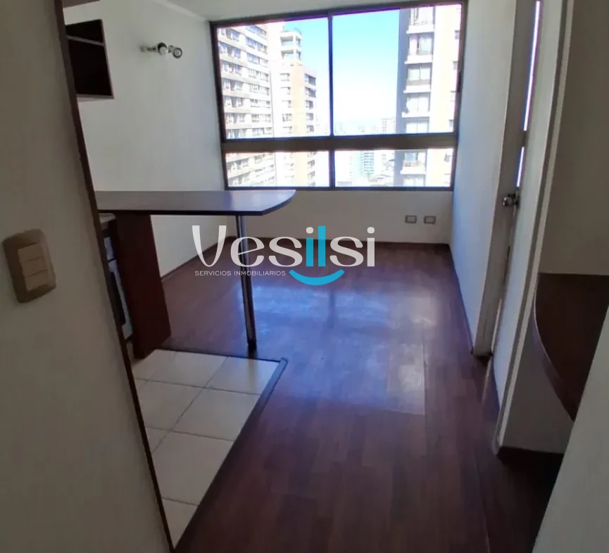Este departamento ubicado en la Comuna de Santiago, esta distribuido de la siguiente manera, una habitacion matrimonial, un baño completo en Suits, una cocina abierta americana, cocina eléctrica, balcón, piso 7. SE PUEDE ARRENDAR CON ESTACIONAMIENTO, VARIA EL PRECIO A 380.000 CLP.