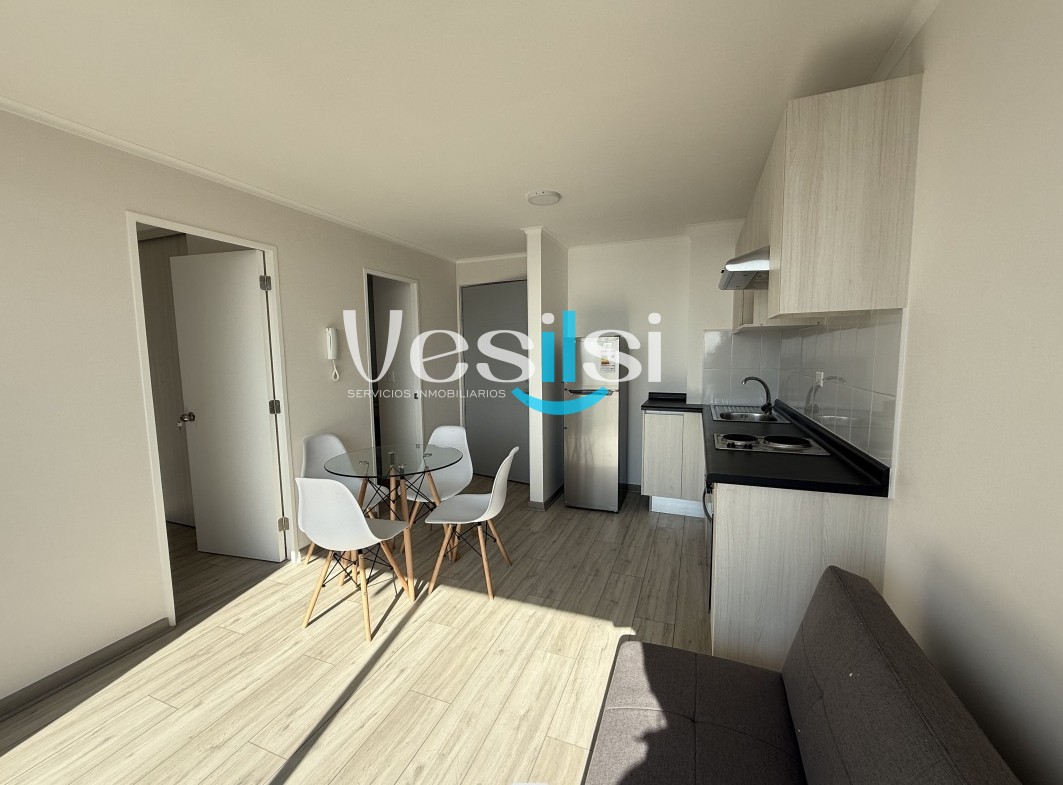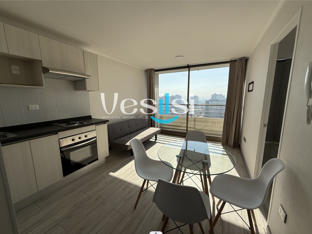 Este departamento ubicado en la Comuna de Cerrillos, esta distribuido de la siguiente manera, una habitacion matrimonial, un baño completo en pasillo, una cocina abierta americana, cocina eléctrica, balcón, piso 18.
