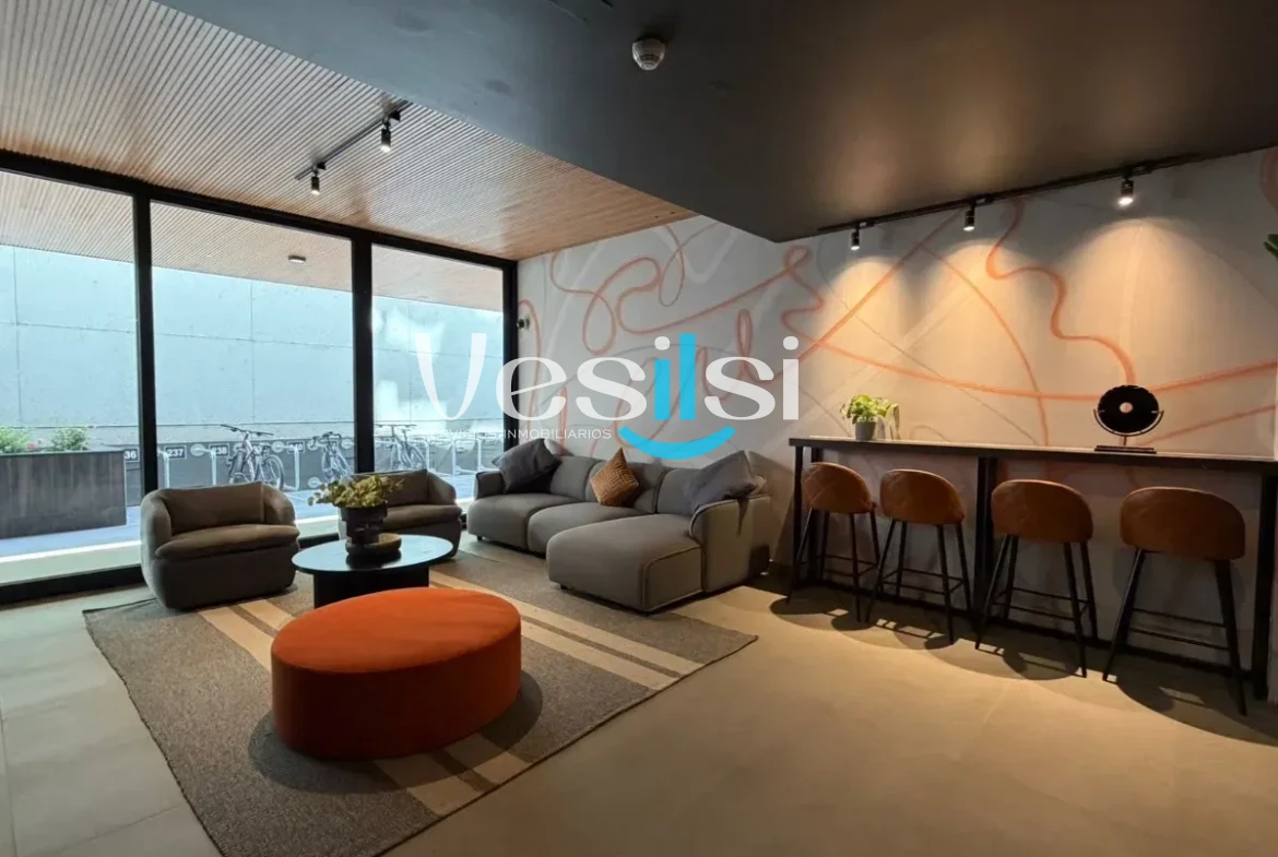 Este departamento ubicado en la Comuna de Ñuñoa, esta distribuido de la siguiente manera, una habitación matrimonial, un baño en suits, una cocina abierta, balcon y piso 3A.
