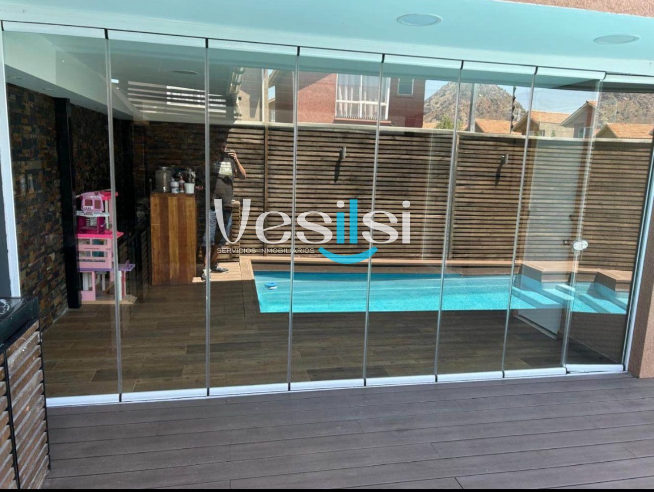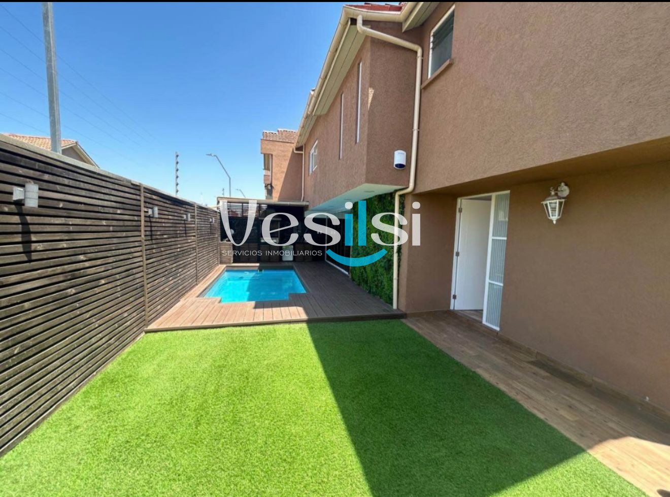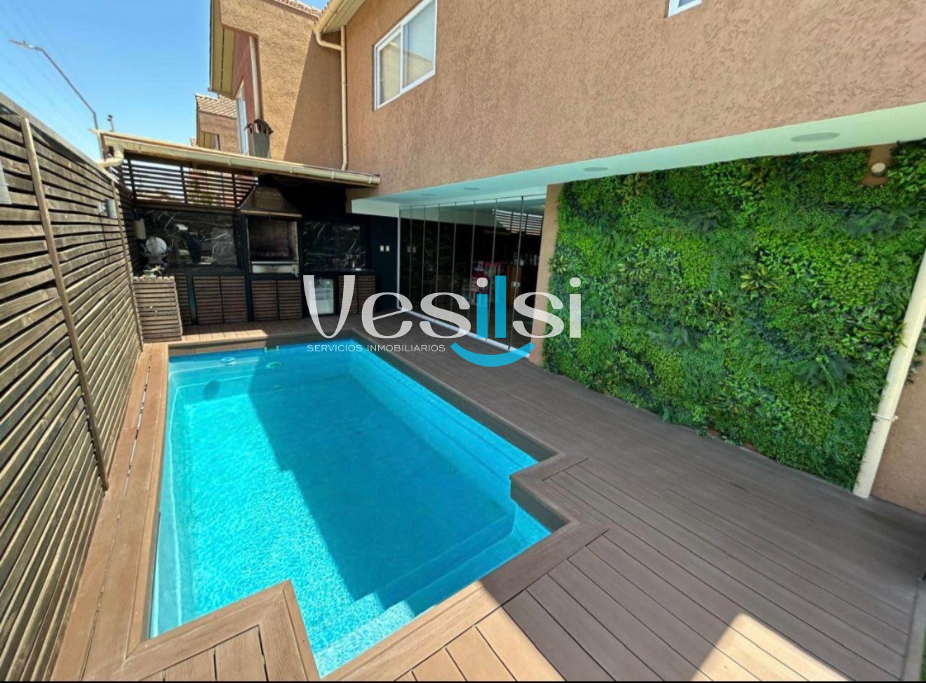 Esta casa se encuentra ubicada en la Comuna de San Bernardo, esta distribuido de la siguiente manera, cuatro habitaciónes matrimoniales, dos baños completo en suits, dos baños completo en pasillo, una cocina independiente americana, cocina electrica, terraza con cierre panoramico mas bar-lounge, piscina y ESTACIONAMIENTO Y BODEGA INCLUIDO.
